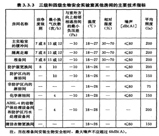生物安全實驗室主要技術(shù)指標應滿足下表要求: