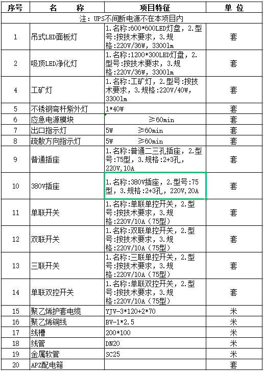 實驗室供電系統采購清單